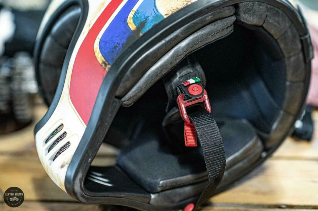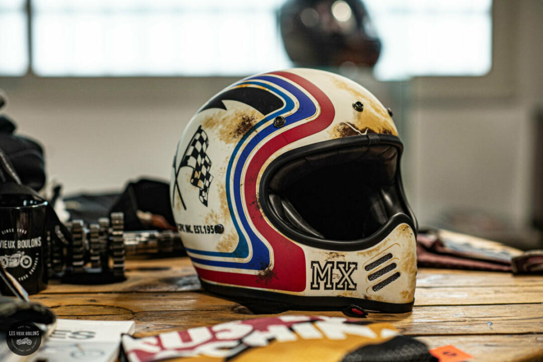Le casque Premier Trophy MX reflète le style et les formes de cross casques des 70, mais est conforme aux normes de sécurité modernes.