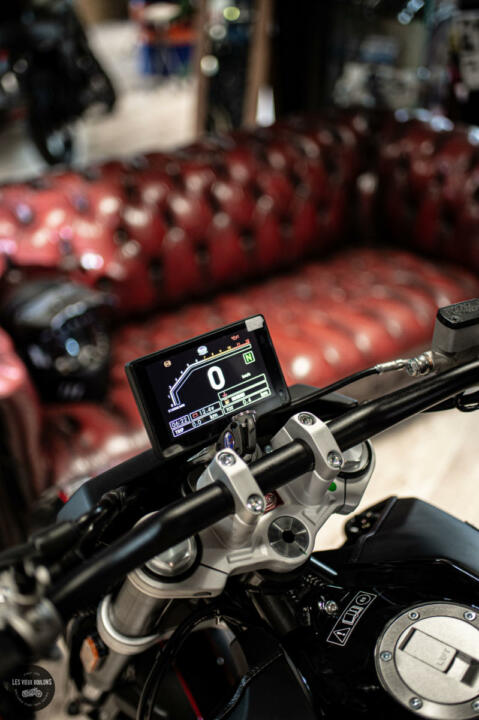Au coeur de la moto, on retrouve un monocylindre 4 temps à refroidissement liquide, ainsi celui-ci répond désormais à la norme Euro5. Côté performances, ce bijoux est capable de délivrer 10 kW de puissance et un couple de 10,5 Nm. La partie cycle n’est pas en reste avec sa grosse fourche inversée et son amortisseur arrière, son étrier radial à 4 pistons à l’avant ou ses jantes à rayons. L’ensemble se montre assez léger avec seulement 133 kg à sec.